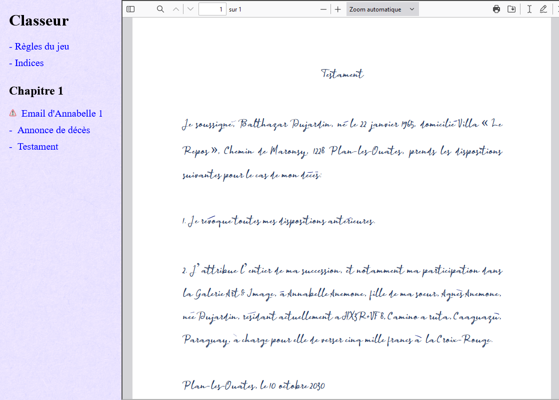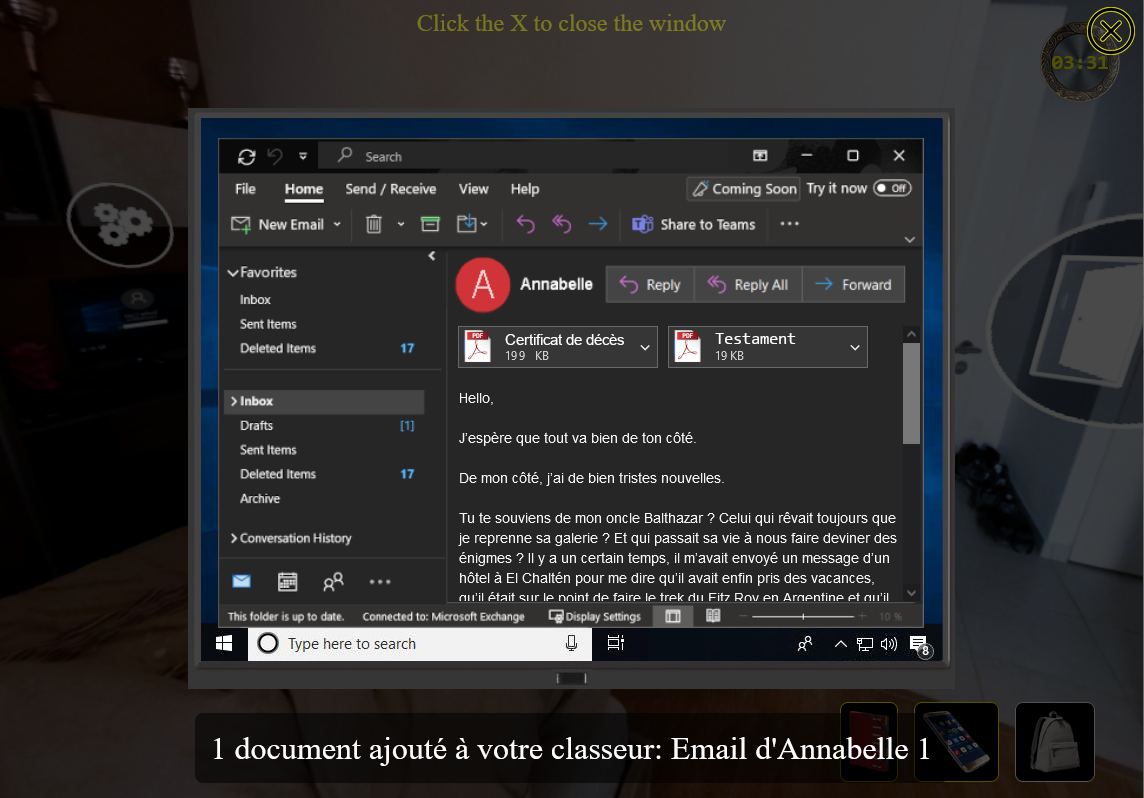 The game alternates between digging, during which the student investigates to gather relevant information (e.g. information about the gallery, the rules of the partnership contract to be applied or evidence of dishonest behaviour by the other partners) and unlocking levels, i.e. solving legal questions (thanks to the clues gathered) in the form of digicodes, padlocks or other passwords. It is designed so that students can playfully experience the various stages of legal reasoning that will enable Anabelle to leave the company with her uncle's share. Students can draw on their course and previously acquired knowledge to identify and analyse the information found and determine the applicable legal rules.