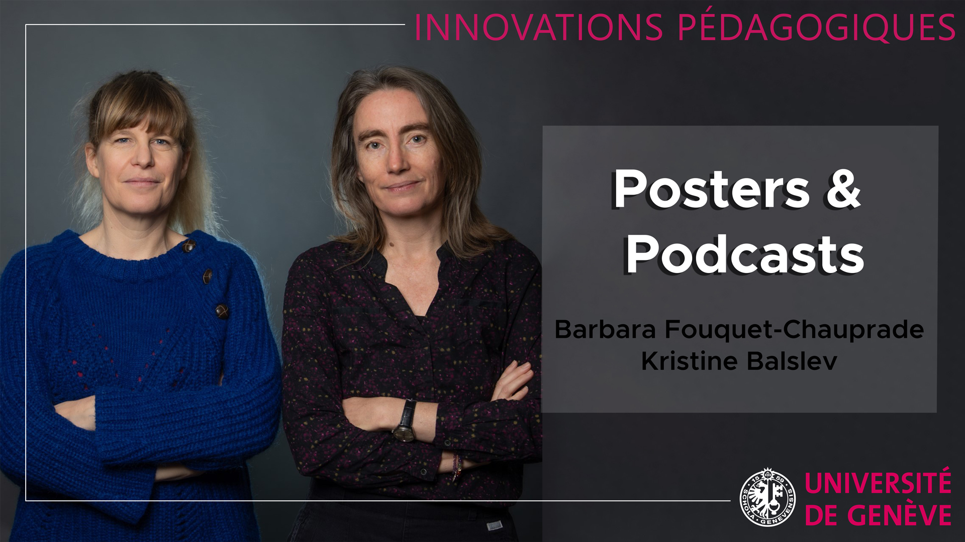 | https://www.youtube.com/embed/Vnm9oGKI5Pk?si=jrCDlXsGoFzYxdr1 | Barbara Fouquet-Chauprade & Kristine Balslev | Posters & podcasts | Ce cours vise à enseigner aux étudiant-es les diverses formes d'intervention en sciences de l'éducation, à les préparer, les analyser et à les mettre en œuvre. Les étudiant-es interagissent avec des intervenant-es extérieur-es et sont amenés à concevoir des projets d'intervention en réponse à des mandats fictifs, ainsi qu'à présenter leurs propositions à travers des posters et des podcasts. |