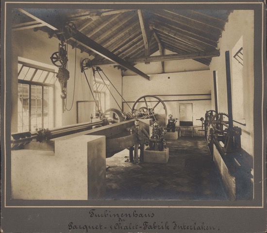 Photographie de la salle des turbines de la Chalet-Fabrik, Unterseen, après 1910.