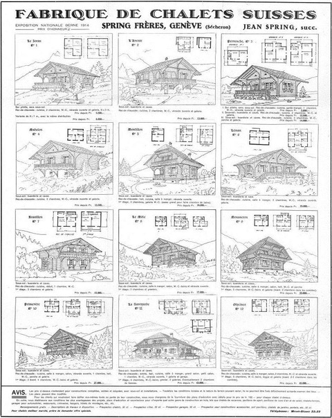 Prospectus de la Fabrique de Chalets Suisses Spring Frères – Jean Spring succ., après 1926.