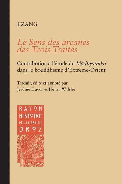 Ducor, Jérôme et Isler, Henry W. : Jizang, Le Sens des arcanes des Trois Traités, contribution à l'étude du Mādhyamika dans le bouddhisme d'Extrême-Orient (Rayon Histoire de la Librairie Droz n° 9); Genève, Librairie Droz, 2022; 416 pp., bibliographie (ISBN-13: 978-2-600-06383-8)