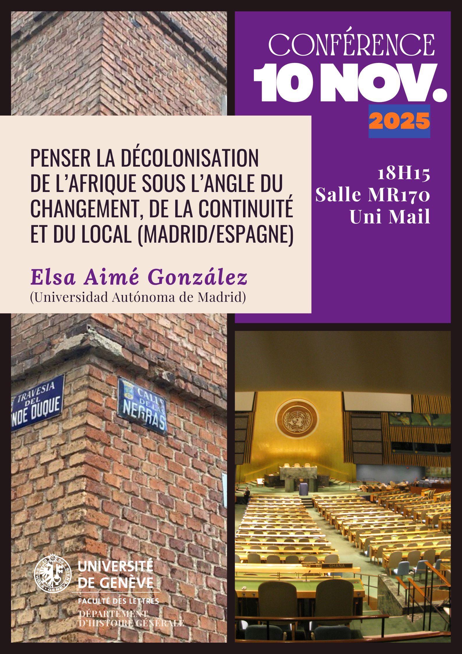 Le prof. Alexander Keese a le plaisir de vous inviter à la conférence "Penser la décolonisation de l'Afrique sous l'angle du changement, de la continuité et du local (Madrid/Espagne) que donnra Elsa Aimé González (Universidad Autónoma de Madrid) intitulée