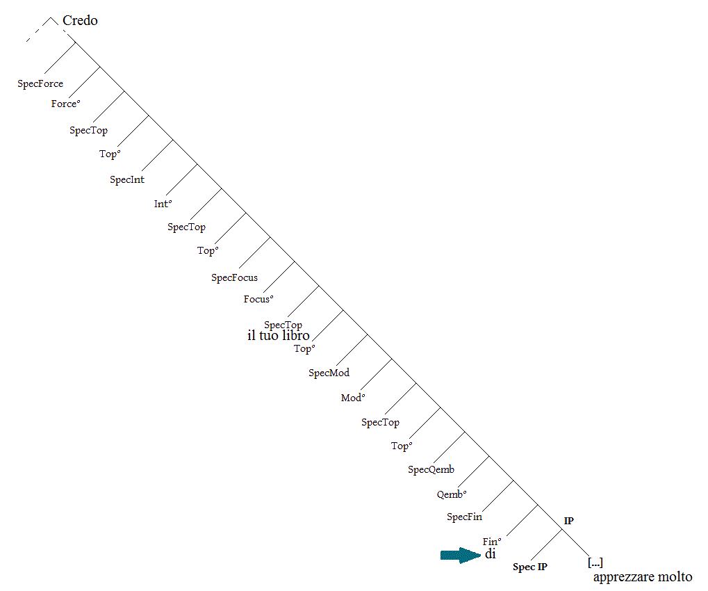 ♦ The finitess head is the lowest head of the CP and it is in direct contact with the content of the IP. Rizzi (1997: 283) claims that "the choice of the complementizer reflects certain properties of the verbal system of the clause”, in particular its finite/non-finite nature.