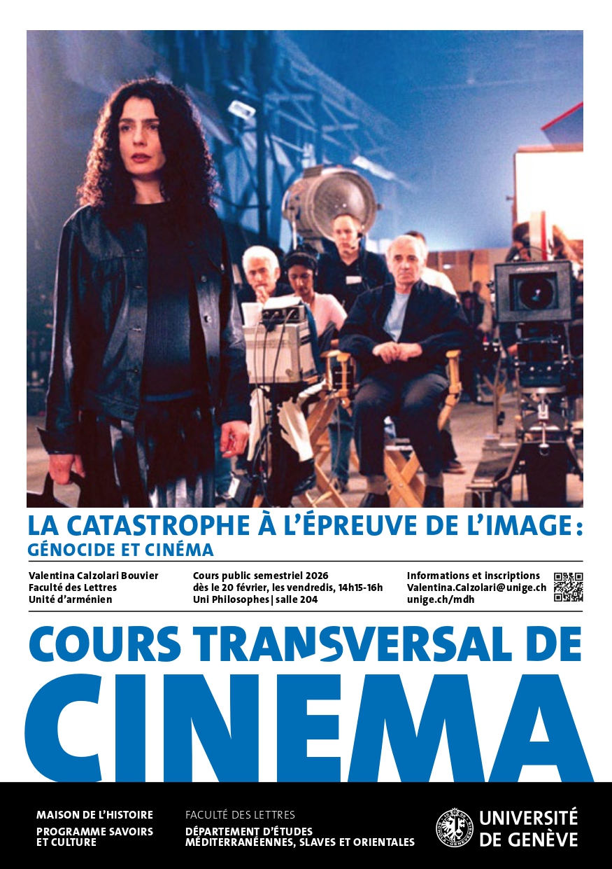 Proposé par l'Unité d'arménien (Faculté des lettres), ce cours transversal, dont le titre s'inspire de l'ouvrage de J. Walter, La Shoah à l’épreuve de l’image (2005), interroge le rapport entre littérature, arts visuels — en particulier le cinéma — et témoignage face à l'expérience génocidaire. Il prend pour point de départ le génocide des Arméniens de l’Empire ottoman (1915) et s'inscrit dans une perspective comparative incluant la Shoah ainsi que les génocides au Cambodge (1975-1979), au Rwanda (1994) et actuellement en Palestine.