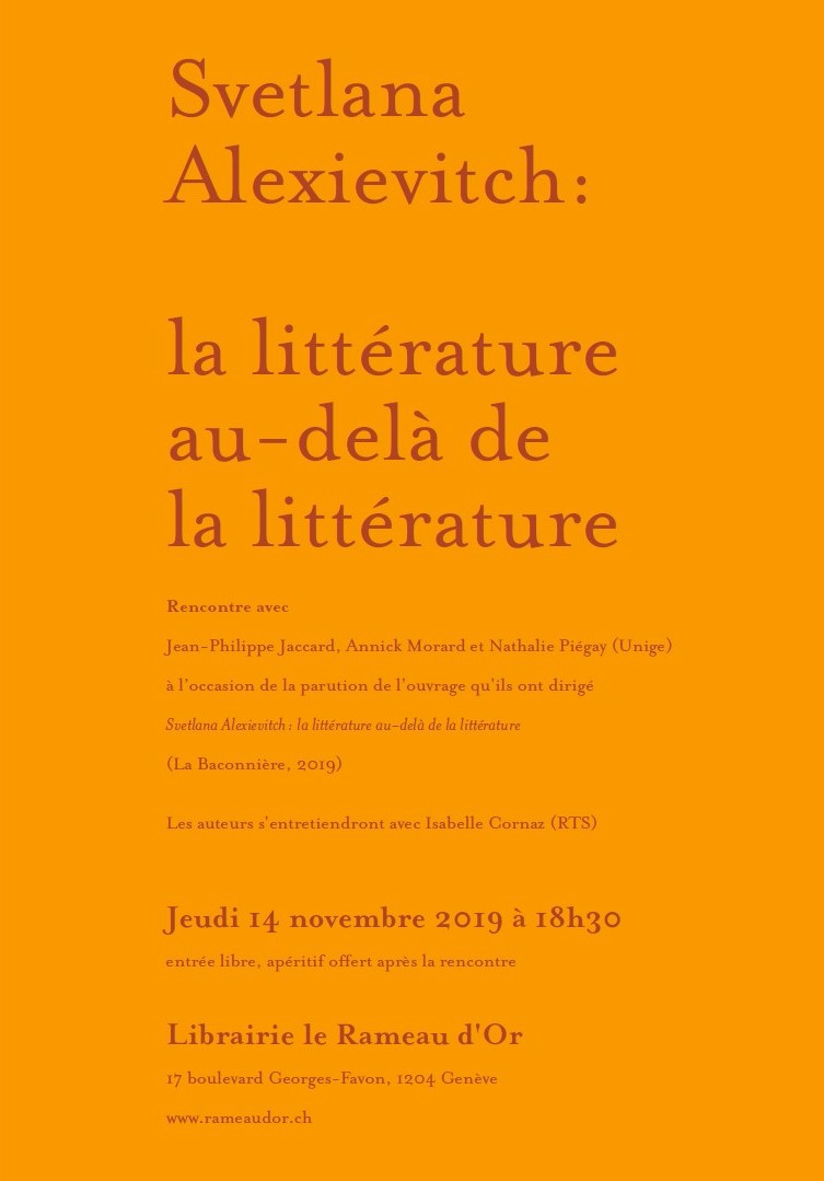 A l’occasion de la parution de l'ouvrage collectif Svetlana Alexievitch : la littérature au-delà de la littérature, une rencontre est organisée