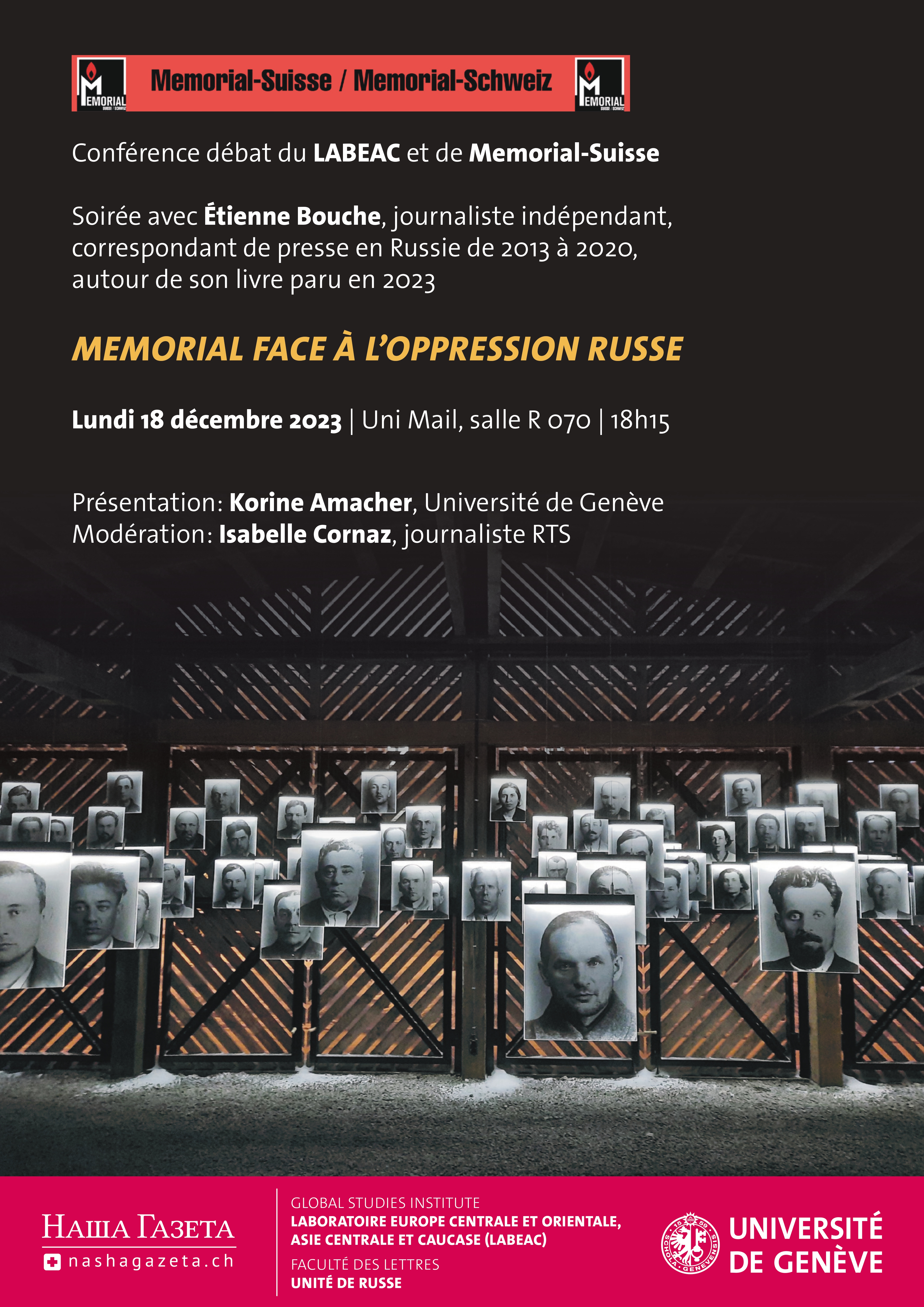 L'unité de russe se joint au Laboratoire "Europe centrale et orientale, Asie centrale et Caucase" (GSI) et à l'association Memorial-Suisse pour vous inviter à la conférence-débat