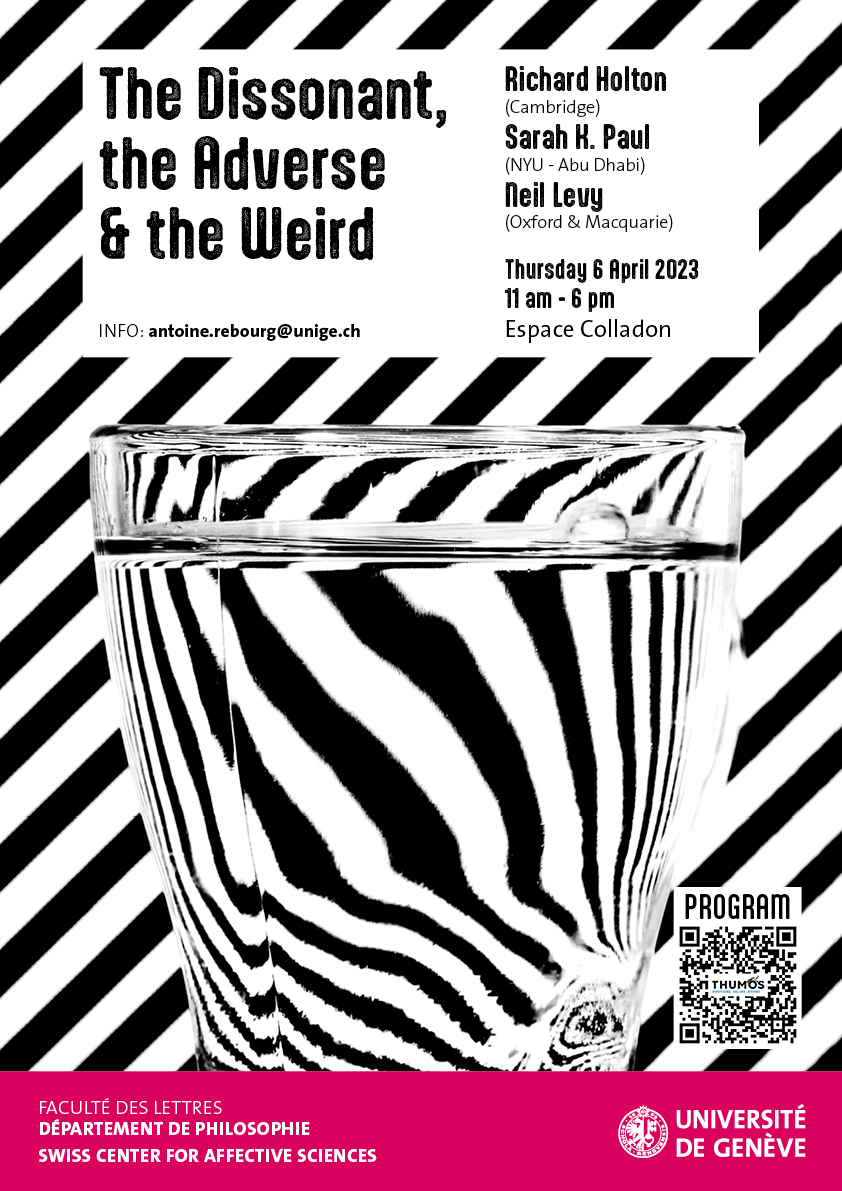New Perspectives on Doxastic Voluntarism, June 23th 2009. Workshop with Josep Corbi (Valencia),Richard Feldman (Rochester), Philipp Nickel (Eindhoven), Erik Olsson (Lund), Daniel Schulthess (Neuchâtel). Organisation: Pascal Engel, Episteme.