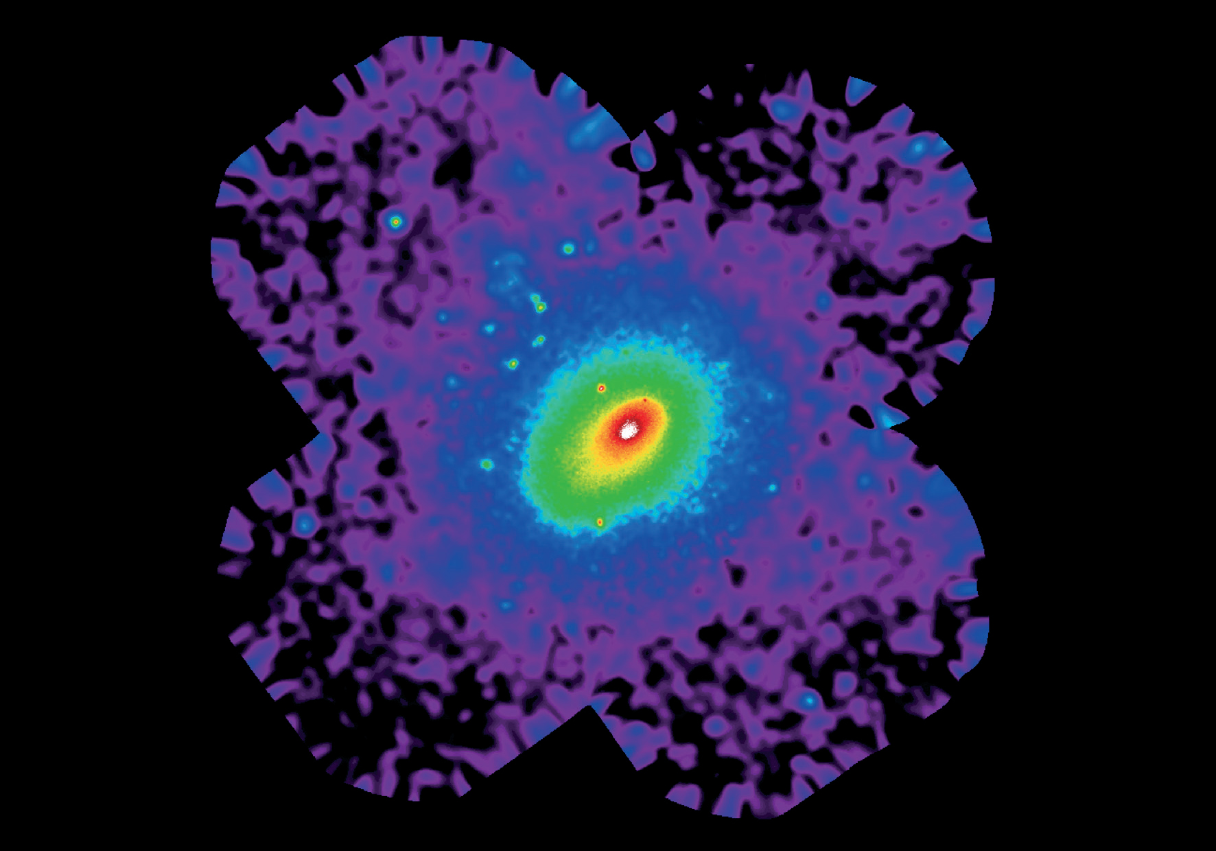 Est-il possible de déterminer la densité gazeuse d’un amas de galaxies uniquement à partir de cette image en deux dimensions prise par le télescope spatial à rayons X XMM-Newton? Faites appel à un statisticien!