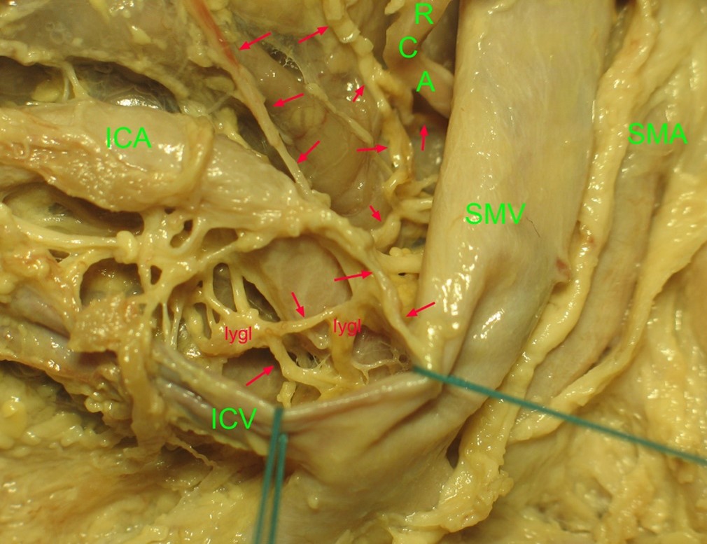 Le système lymphatique a parfois été considéré comme l’un des systèmes les plus compliqués d’Homo sapiens. La lymphadénectomie D3 pour cancer, soit par accès libre, soit par laparoscopie, soit par chirurgie robotique, a apporté un nouvel éclairage sur l'anatomie lymphatique du mésentère de l'intestin grêle et du gros intestin. Les problèmes à résoudre comprennent le nombre, la taille et la position des ganglions lymphatiques situés autour des axes mésentériques (c'est-à-dire dans le volume D3), le nombre et la clairance des faisceaux lymphovasculaires par rapport aux vaisseaux sanguins intestinaux, les gros vaisseaux lymphatiques proximaux du tronc intestinal. Ces tâches sont accomplies par une macro et micro dissection minutieuse du mésentère humain, une analyse d'images, une microscopie optique et une vérification immunohistochimique.