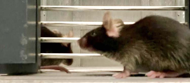 «Pour pouvoir observer quels neurones sont activés lors d’une interaction sociale, nous avons appris à des souris à réaliser une tâche simple qui leur permet d’entrer en contact avec leurs semblables», explique Camilla Bellone, professeure au Département de neurosciences fondamentales de la Faculté de médecine de l’UNIGE et directrice du PRN Synapsy. Ainsi deux souris sont placées dans deux compartiments différents et séparées par une porte. Lorsque la première souris appuie sur un levier, cette porte s’ouvre temporairement, permettant d’établir le contact social, à travers une grille, avec la seconde souris. «Au fur et à mesure de l’expérience, la souris comprend qu’elle doit appuyer sur le levier pour rejoindre sa congénère, entrainant une augmentation de la motivation à réaliser cet effort», poursuit Clément Solié, chercheur dans l’équipe de Camilla Bellone.