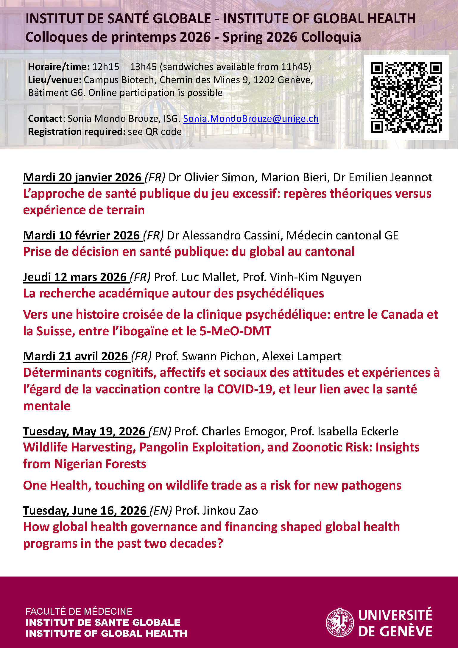This presentation validates 2 credits in Prevention and Public Health. A fee of 25.- is charged for participants who wish to receive a certificate with FMH credits in Prevention and Public Health.