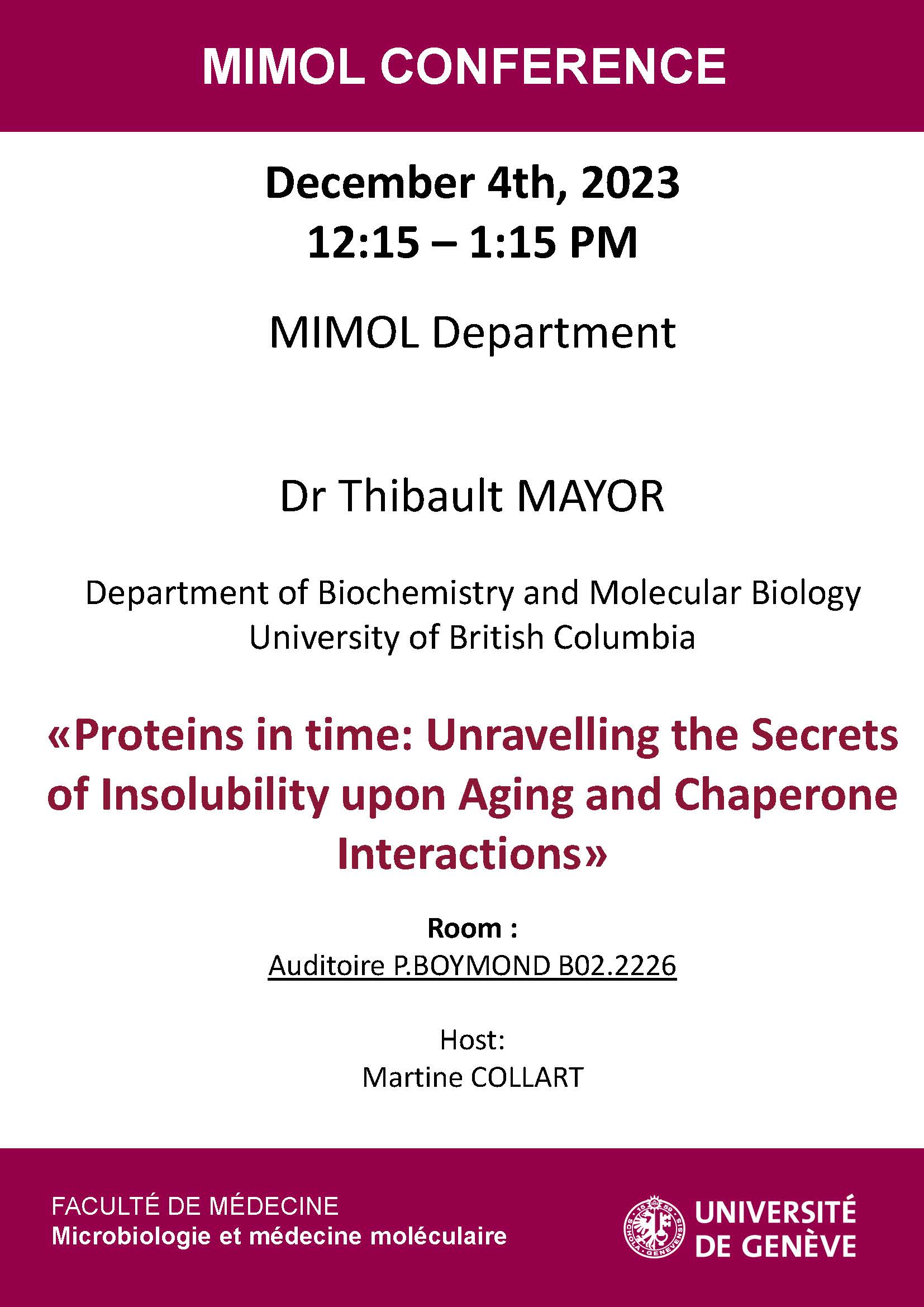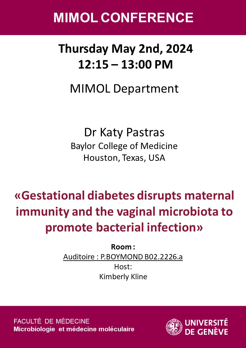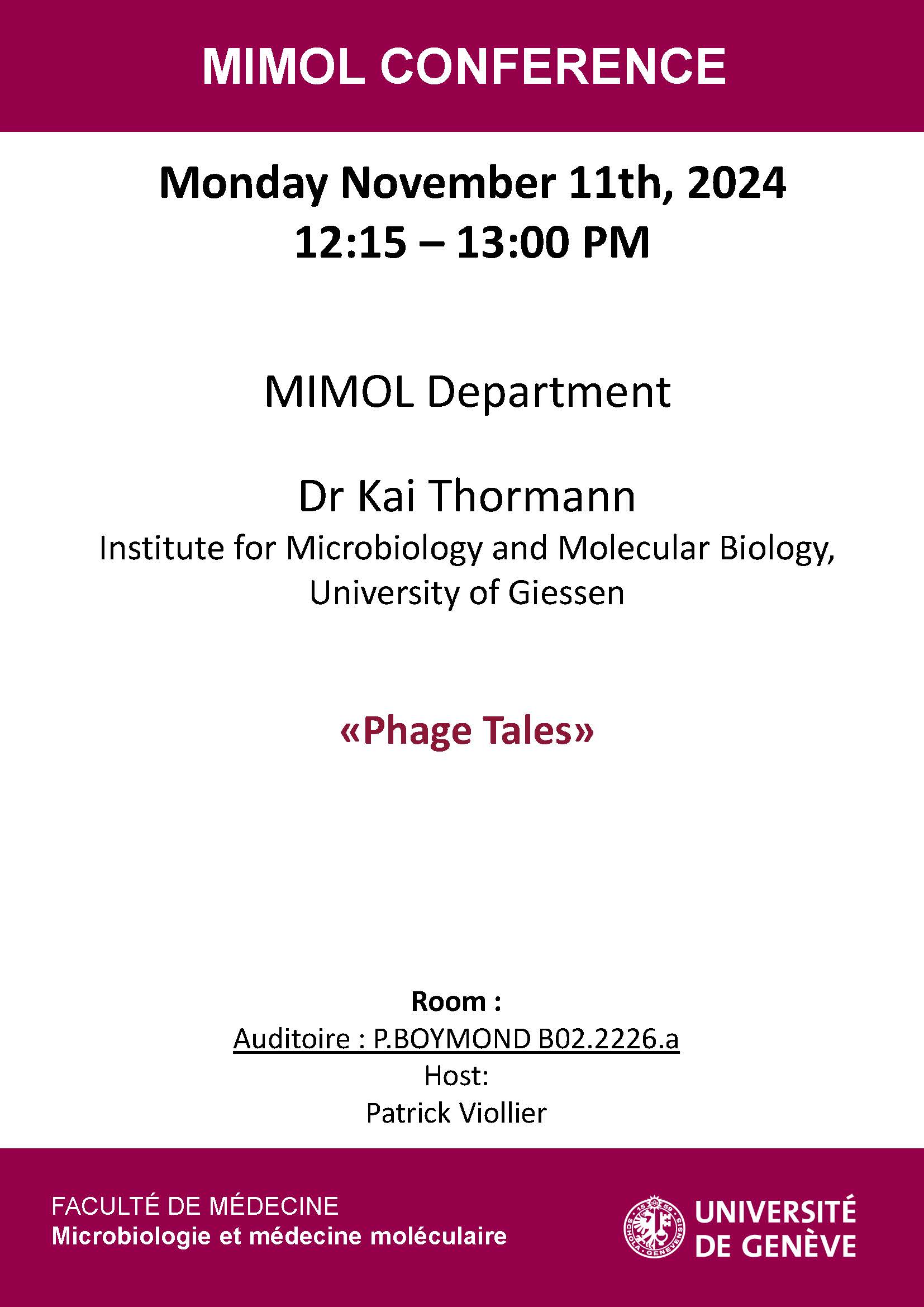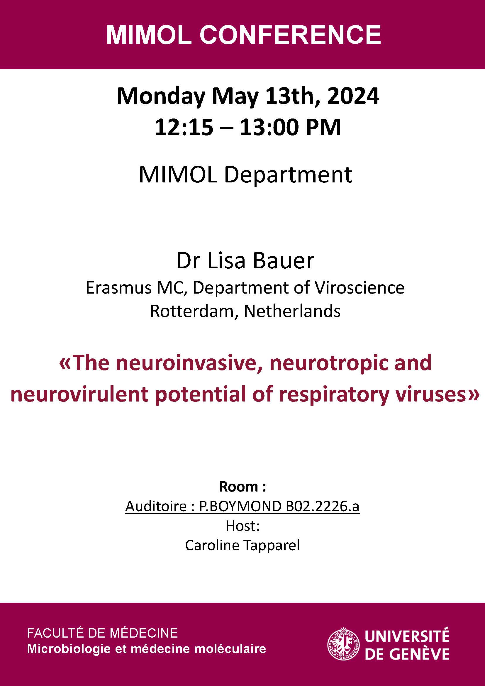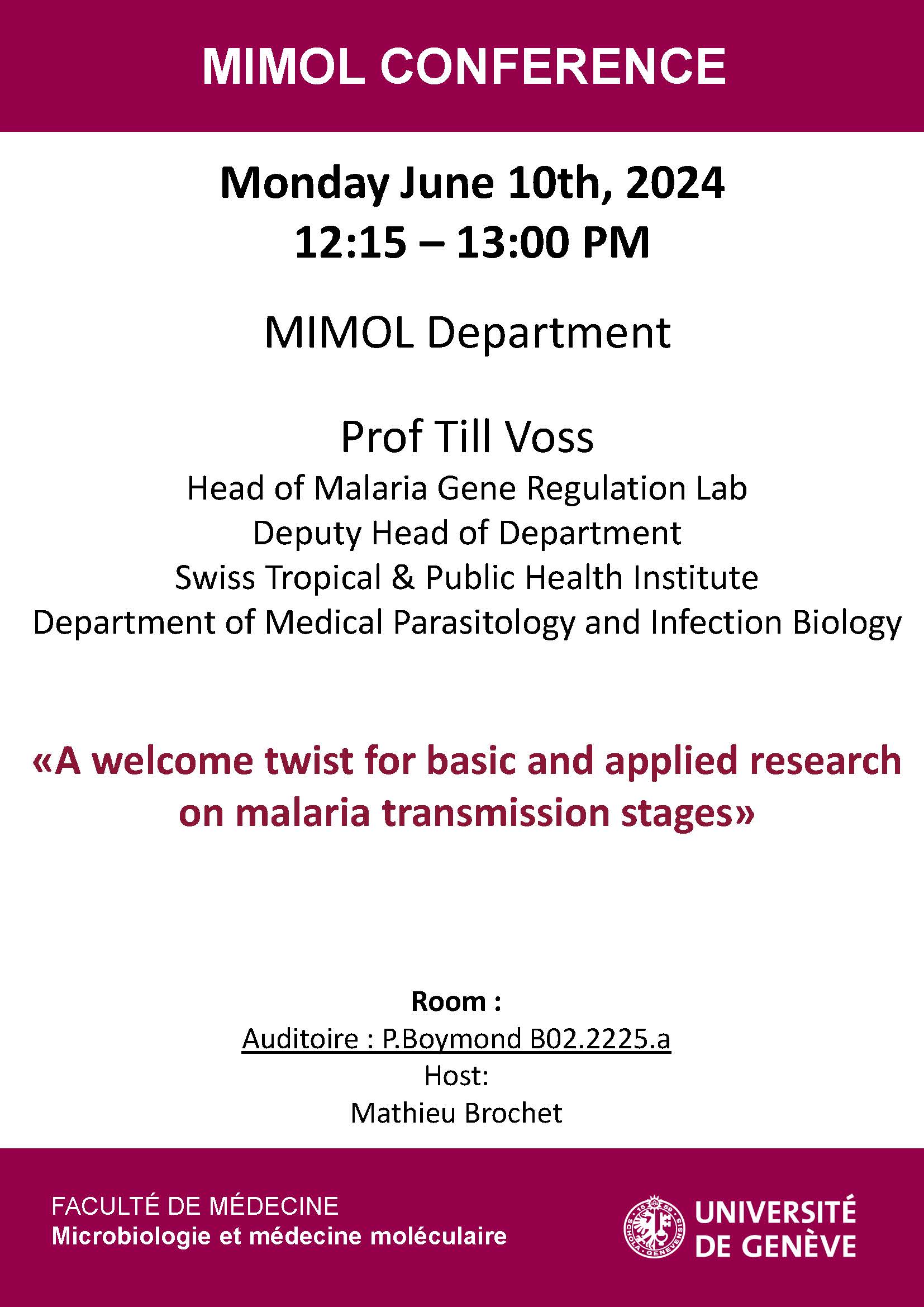 12.30 | Auditoire Müller | Prof. Mathieu Brochet | Professeur ordinaire Département de microbiologie et médecine moléculaire, Faculté de médecine UNIGE |