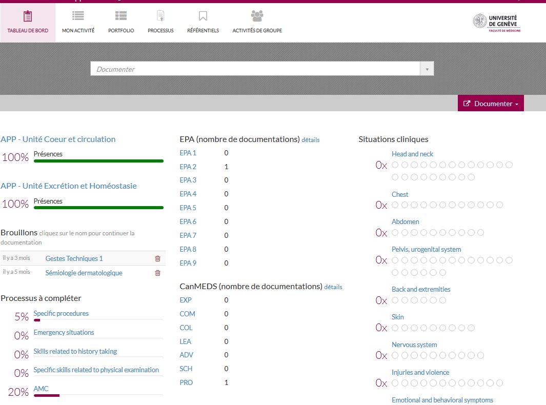L’étudiant-e doit en effet pouvoir documenter son parcours et le degré d’autonomie validé dans diverses activités. Le portfolio électronique GPS est actuellement en phase pilote en 2e bachelor pour les aspects de professionnalisme et de compétences cliniques et sera testé à la fin du semestre en années master. Au cours de ses années d’études, l’étudiant-e y notera ses activités et la validation régulière, par le-la maître de stage, de son niveau d’autonomie. Le déploiement complet est prévu dès la rentrée 2019.