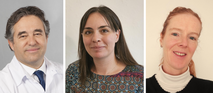 ©UNIGE/HUG. De gauche à droite : Prof. Stephan Harbarth, Dre Nasreen Hassoun-Kheir et Dre Marlieke de Kraker, qui coordonneront le projet RESERVOIR