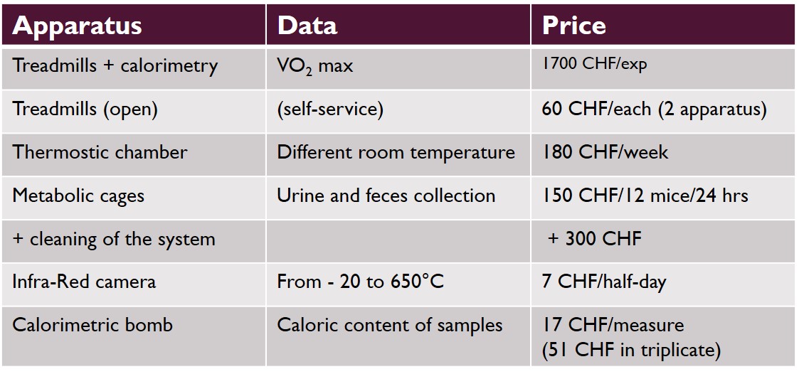 Pour les collaborateurs externes à l’Université, contacter Christelle Veyrat-Durebex pour un devis. Celui-ci devra être accepté par les utilisateurs avant le transfert des animaux à la plateforme.