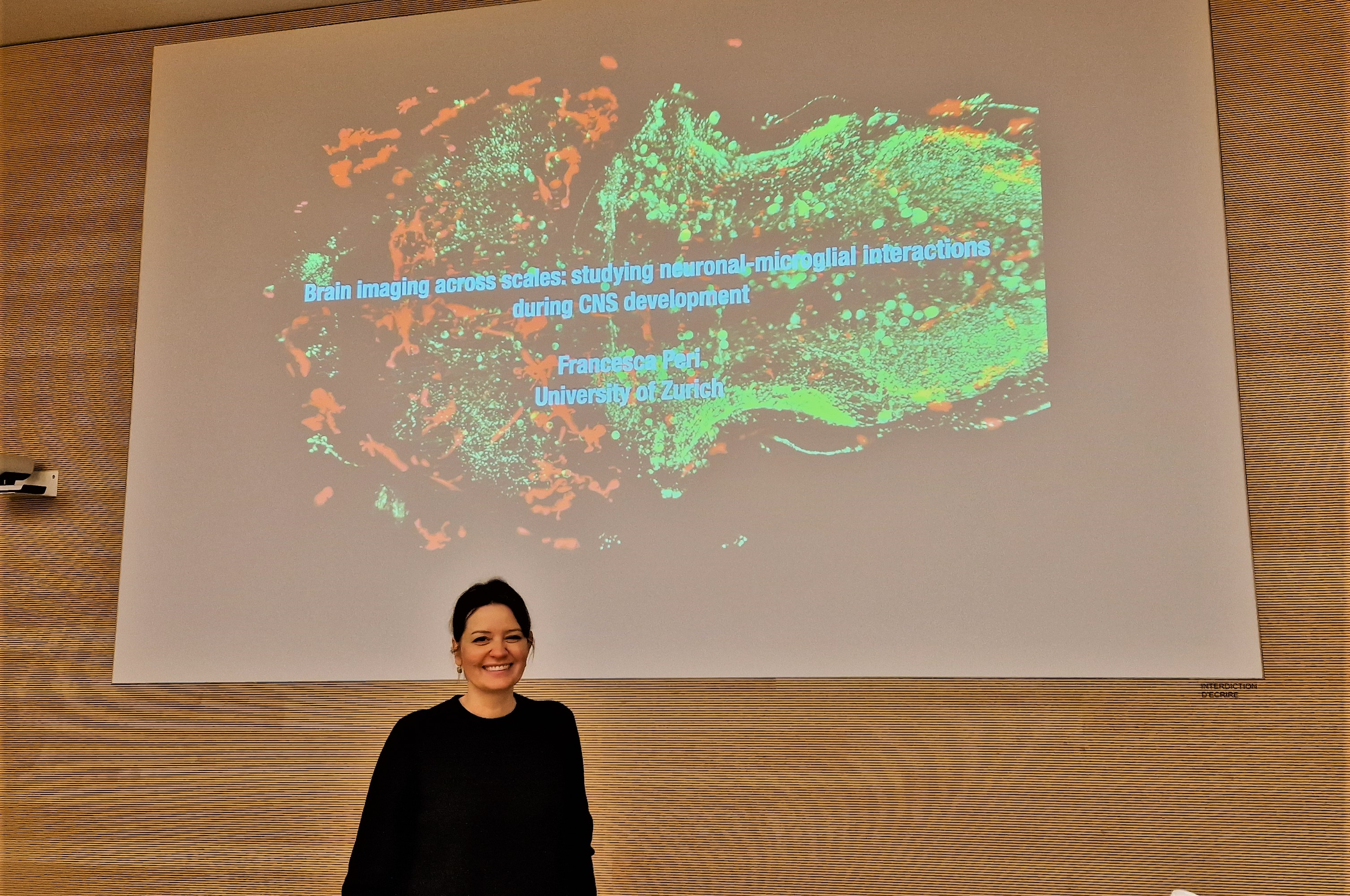 Le 23 janvier 2024, la Pre Francesca PERI, Département des Sciences de la vie moléculaires, Université de Zurich, invitée par la Pre Anne-Claude GAVIN, a donné une conférence passionnante intitulée "Brain imaging across scales: studying neuronal-microglial interactions during CNS development".