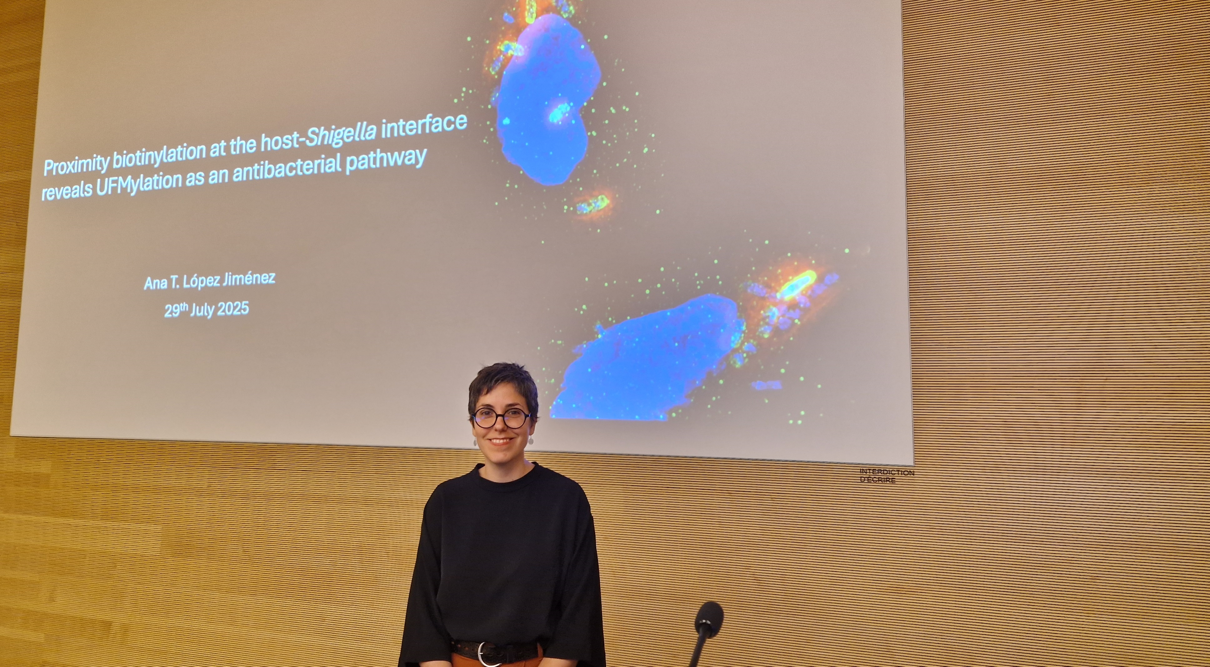 Le mardi 29 juillet, la Dre Ana Teresa LOPEZ JIMENEZ, du laboratoire du Pr Serge MOSTOWY, London School of Hygiene & Tropical Medicine, donnera une conférence intitulée "Proximity biotinylation at the host-Shigella interface reveals UFMylation as an antibacterial pathway".