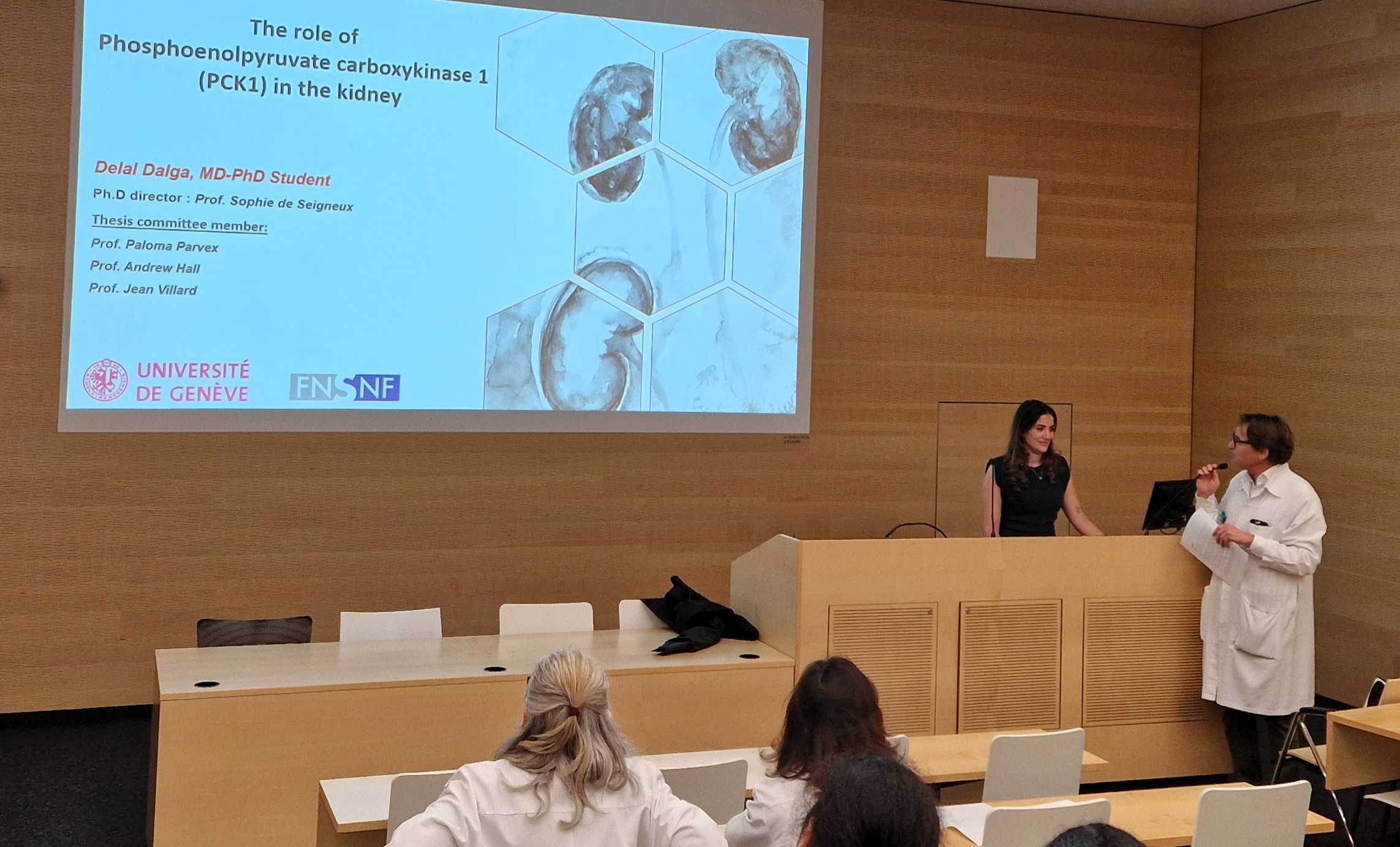 On the 13th of March 2026, Mrs Delal Dalga successfully defended her MD-PhD thesis entitled "The role of Phosphoenolpyruvate carboxykinase 1 in the kidney". Her thesis was conducted under the supervision of Prof. Sophie de Seigneux from the Department of Cell Physiology and Metabolism.