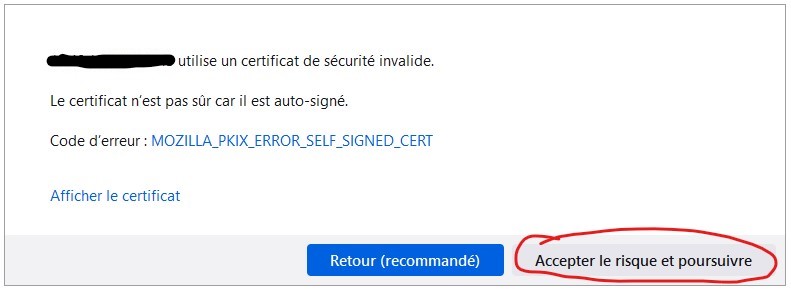 - Accepter les risques en cas de message de sécurité de votre navigateur