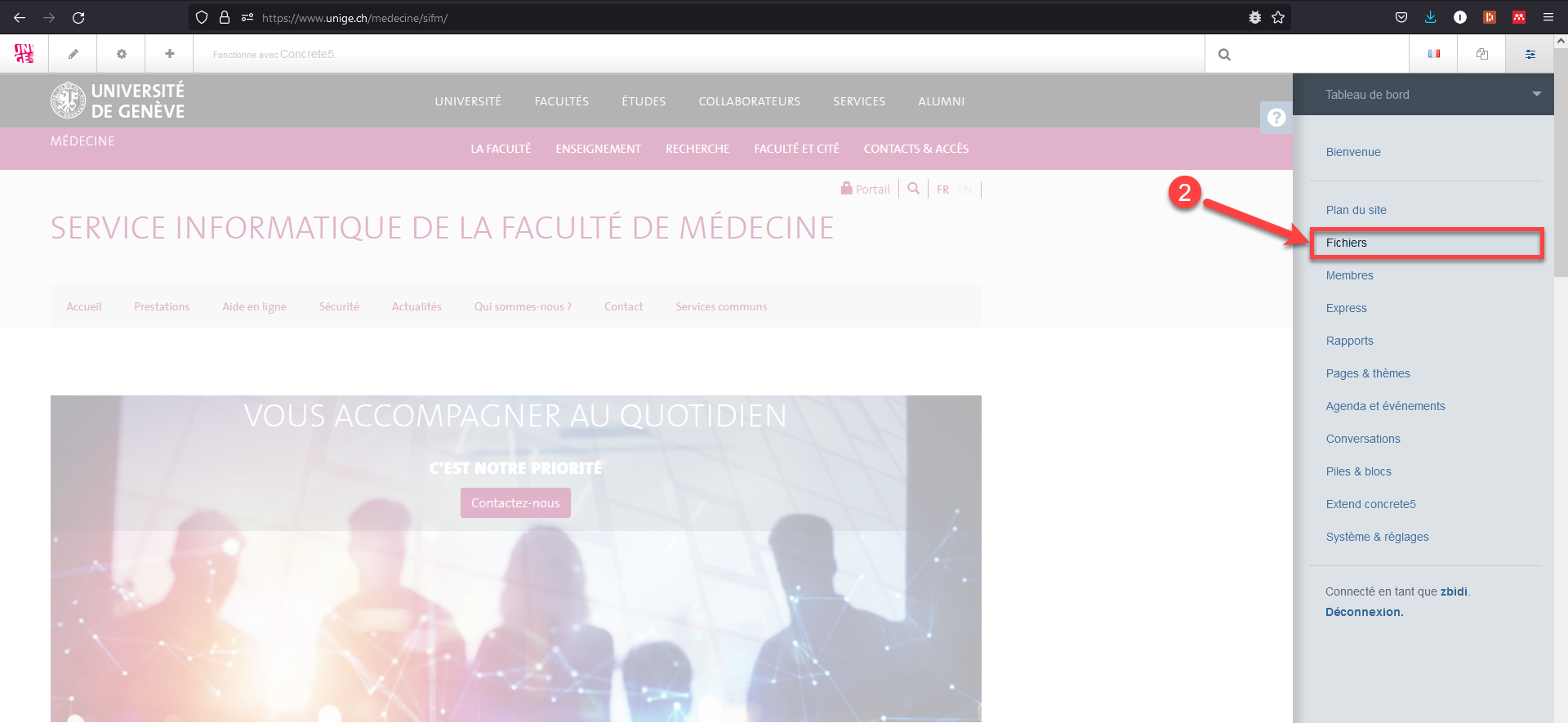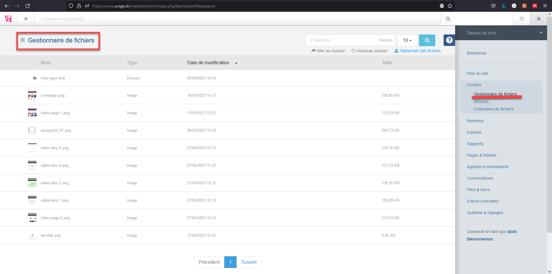 - Cliquer sur "Fichiers" pour accéder au gestionnaire de fichier