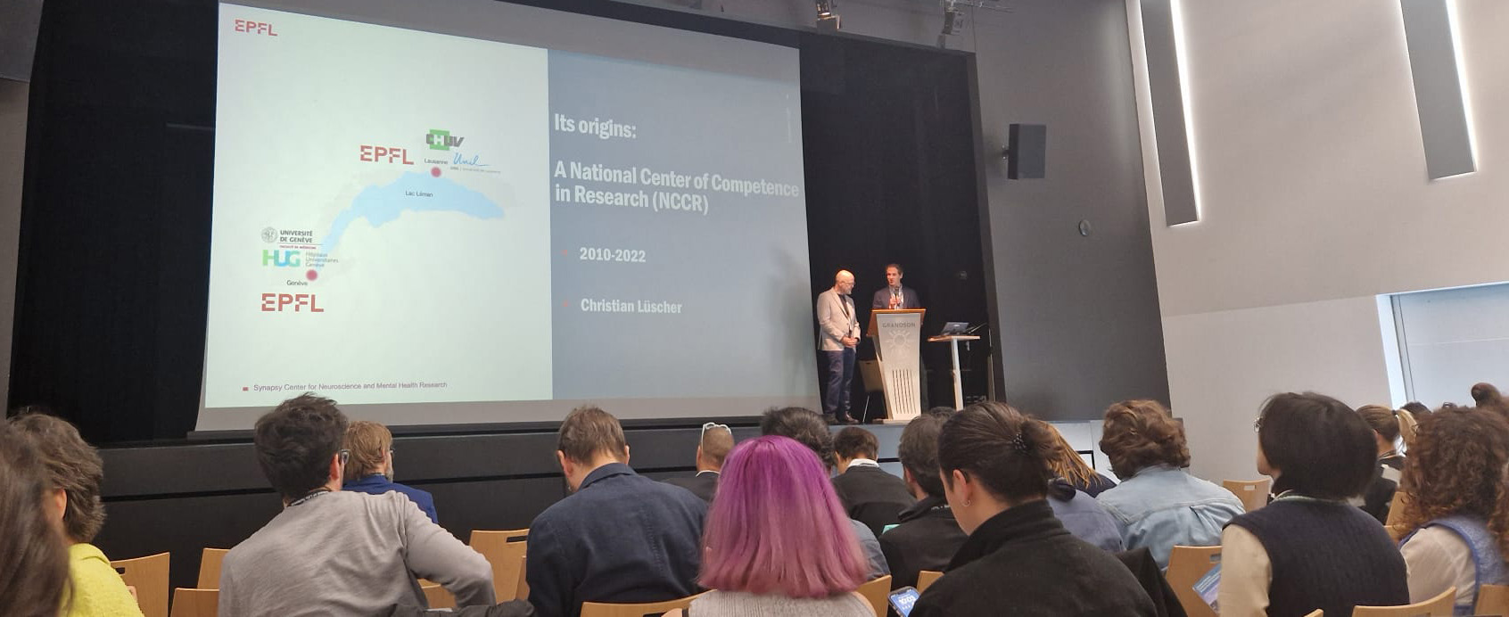 This year’s meeting, hosted by the EPFL Synapsy Center, took place in the inspiring setting of the Salle des Quais in Grandson, on the shores of Lake Neuchâtel. Around one hundred participants attended in person, representing the three centers of the Synapsy Network (UNIGE, EPFL, UNIL/CHUV), which carry forward the legacy of the NCCR-Synapsy.