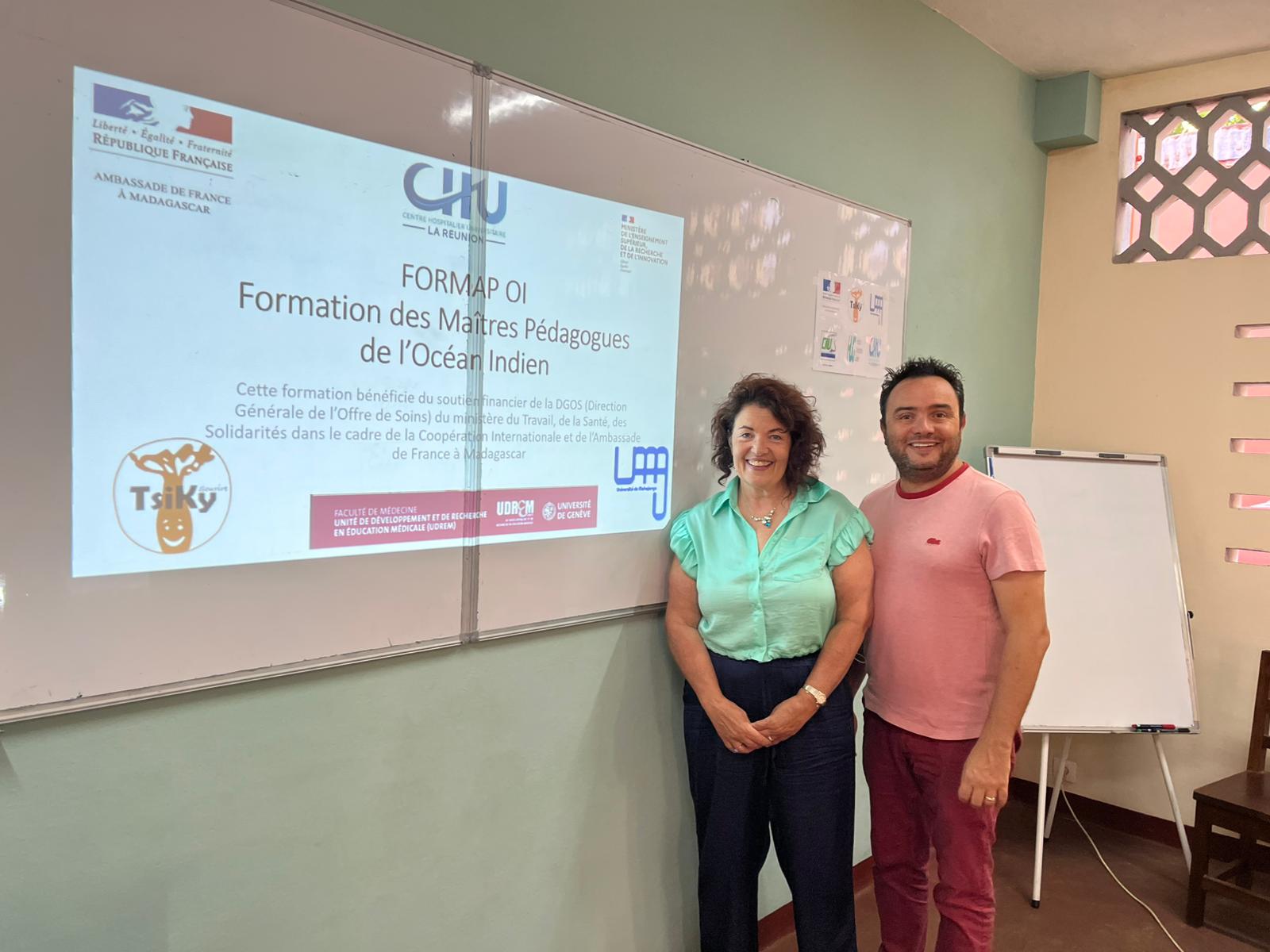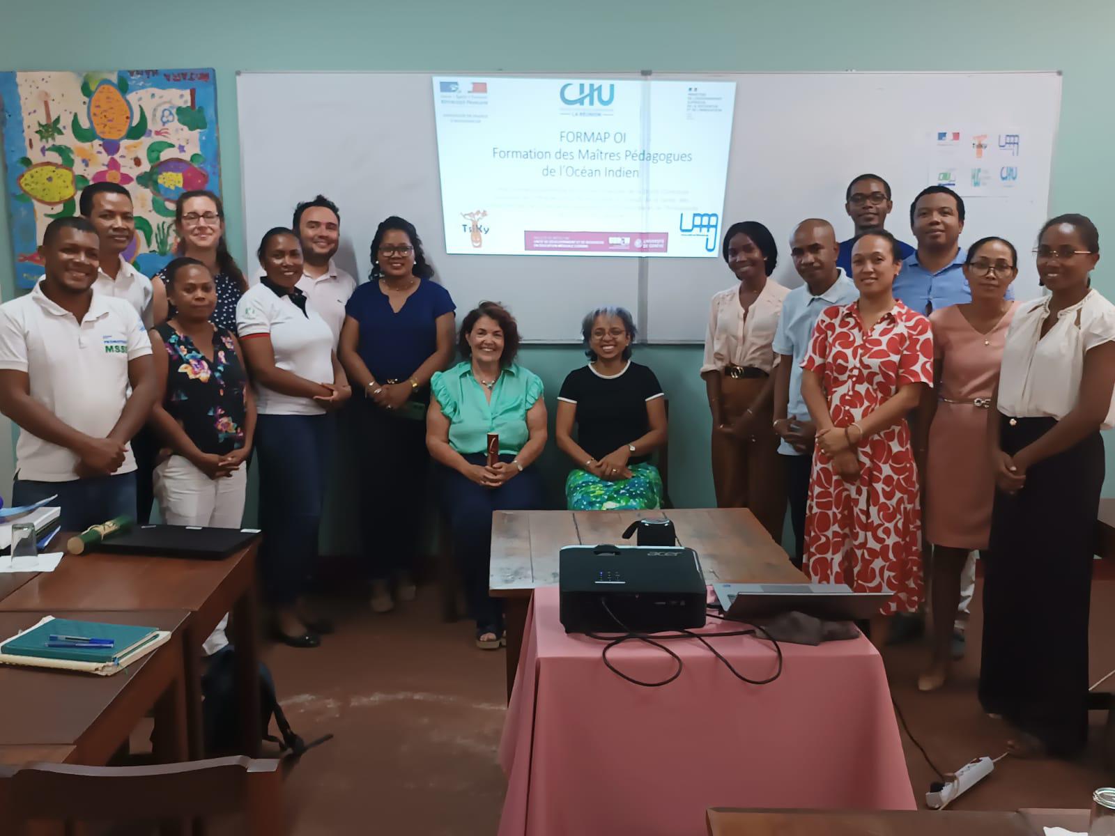 Du 11 au 13 août 2025, une équipe du CHU de la Réunion en partenariat avec l'Université de Mahajanga (la faculté de Médecine, l'Institut d'Odontologie et Stomatologie Tropicale de Madagascar et l'Institut de formation inter-régionale des para-médicaux de Mahajanga), le CHU de P-Zaga de Mahajanga et l'Unité de Développement et de Recherche en Education Médicale - Université de Genève, et avec le soutien de l'association Tsiky, a conduit une mission de formation destinée aux enseignants et professionnels de santé. Cette initiative s'inscrit dans le projet de Formation des Maîtres Pédagogues de l'Océan Indien - FORMAP-OI, qui vise à renforcer les compétences pédagogiques des formateurs en santé dans l'Océan Indien. Ce projet est financé par le CHU de la Réunion et la Direction Générale de l'Offres de Soins grâce à l'Appel à projets "Coopération hospitalière internationale" 2024.