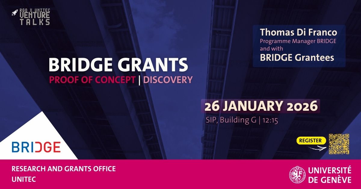 Join us for our next Venture Talk, focused on the Bridge Program (bridge.ch/en). This initiative helps turn excellent research results into successful innovations!