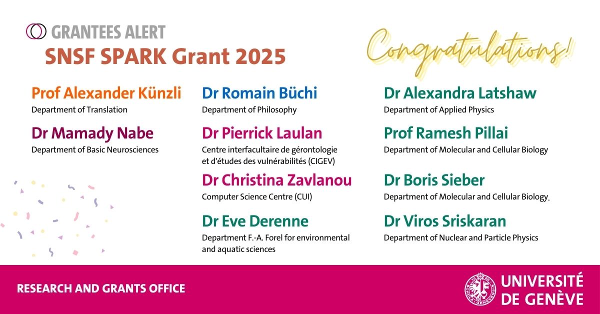 SNSF SPARK 2025 - 10 UNIGE researchers got a grant!