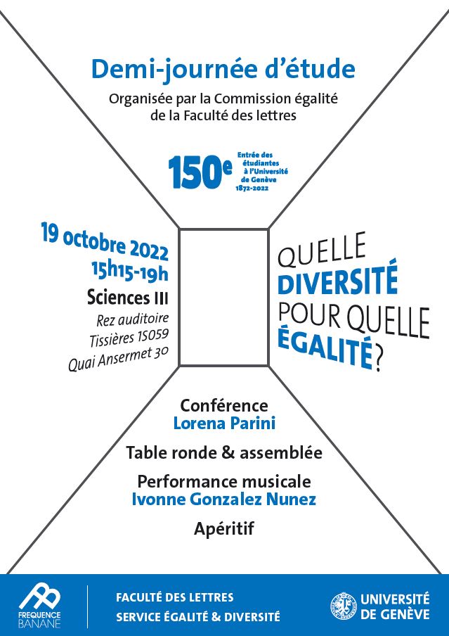 15h15 : Introduction de la demi-journée par Irène Hermann (Codeg) et conférence de Lorena Parini (Institut des études genre), « Réflexions autour de l'égalité, de la différence et de la diversité »