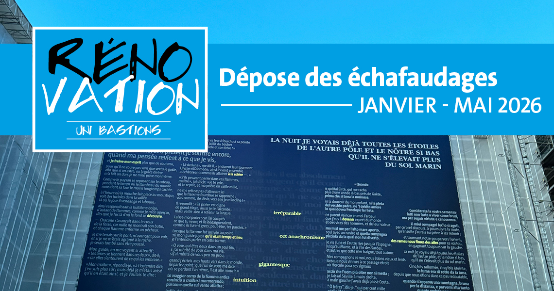 La dépose de l’échafaudage du bâtiment central d’Uni Bastions débute le 22 janvier 2026 et durera environ quatre mois. Les travaux de second œuvre se poursuivent en parallèle. L’enceinte du chantier sera retirée à partir de janvier 2027 pour permettre les aménagements extérieurs. La remise du bâtiment est prévue pour l’été 2027, conformément au calendrier initial.