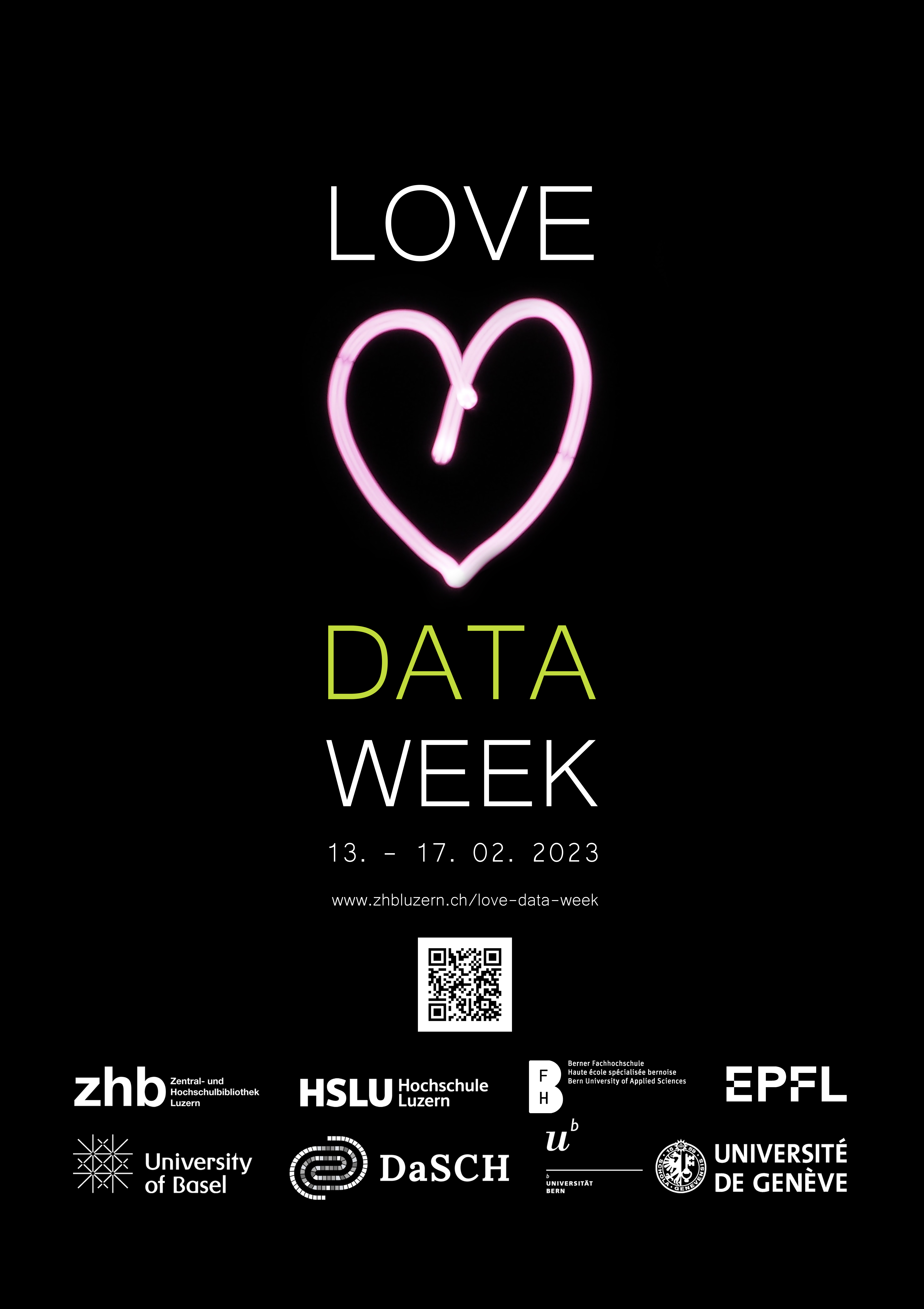 Diverses institutions en Suisse ont uni leurs forces pour proposer des événements d'information et des sessions de formation sur de nombreux aspects de la gestion des données de recherche pendant la Love Data Week. La majorité des événements auront lieu en ligne et sont ouverts à toutes les personnes intéressées. Toutes les sessions sont gratuites, mais certaines nécessitent une inscription préalable.
