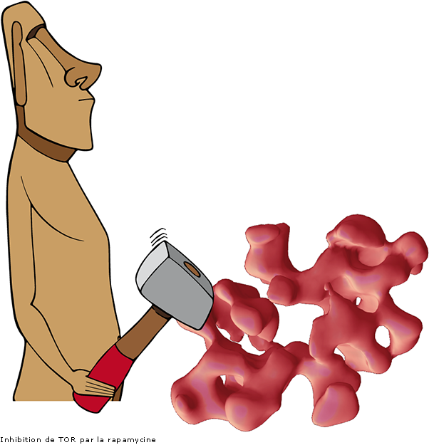 Comment la rapamycine agit-elle? La première étape a été d’identifier sa cible: une protéine intracellulaire nommée TOR (Target Of Rapamycin), qui stimule la croissance de nos cellules. Lors de son post-doctorat, Robbie Loewith a découvert que TOR devait s’intégrer à deux complexes protéiques distincts, TORC1 et TORC2, pour accomplir ses différentes tâches. Etonnamment, tandis que le premier complexe est inhibé par la rapamycine, l’autre ne l’est pas. La raison de l’insensibilité de TORC2 à ce composé est demeurée un mystère pendant plus d’une décennie.