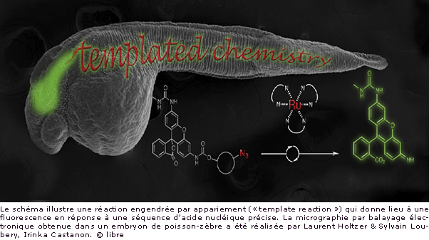 Les équipes de Winssinger et de Marcos Gonzalez-Gaitan, du Département de biochimie de la Faculté des sciences de l’UNIGE, ont mis au point une réaction engendrée par l’appariement («template reaction») qui donne lieu à une fluorescence en présence d’ARN précis. Leur chimie est tellement peu invasive qu’elle fonctionne dans des embryons de poisson zèbre sans les perturber. De plus, étant donné qu’elle ne nécessite aucun organisme génétiquement modifié, elle peut rapidement être adaptée à d’autres systèmes vivants. Enfin, les chercheurs estiment que leur méthode pourrait être élargie à la théranostique (contraction de «thérapie et diagnostic»), permettant ainsi d’orienter les traitements sur une base moléculaire de la maladie.