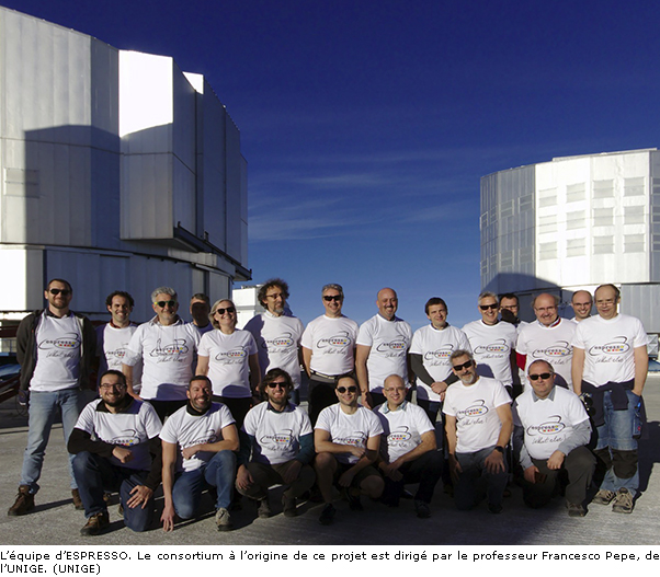 Le 27 novembre 2017, date prévue pour la première lumière, toute l’équipe d’ESPRESSO (Echelle SPectrograph for Rocky Exoplanet and Stable Spectroscopic Observations) était réunie avec les dirigeants de l’ESO pour pointer la première étoile. Ce spectrographe nouvelle génération est le successeur de HARPS (High Accuracy Radial velocity Planet Searcher) qui était à ce jour le meilleur spectrographe au monde. Il pouvait atteindre une précision de 1m/s sur la mesure des vitesses radiales des étoiles alors qu’ESPRESSO pourra lui atteindre une précision de quelques centimètres par seconde. «Le succès obtenu aujourd’hui est le résultat du travail de toute une équipe pendant 10 ans» explique Francesco Pepe, professeur au Département d’astronomie de la Faculté des sciences de l’UNIGE et Genève et membre de PlanetS en charge du projet.
