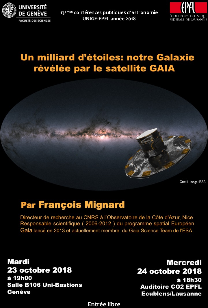 Pour votre information, voici l'affichette des conférences publiques d'astronomie UniGE-EPFL 2018, qui auront lieu :