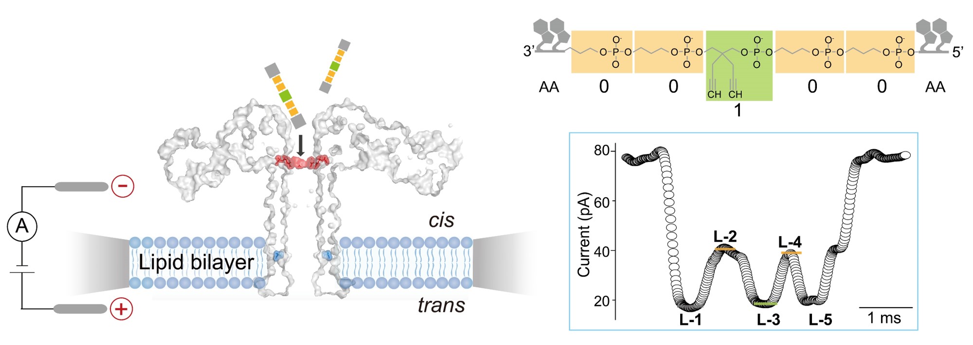 Biological nanopores have been successfully applied in DNA sequencing, which has revolutionized the development of precision medicine. Among all kinds of pore materials, including both biological and solid-state materials, aerolysin is one of the most promising one for identifying the subtle difference of detected molecules due to the geometry and electrostatic features of its channel. Several works have shown aerolysin’s exceptionally high sensitivity, dwell time and signal to noise ratio for analytes like DNA, peptides and polymers. Aerolysin also has four constriction points that can be further engineered, allowing for improvement of the accuracy in the nanopore-based sequencing approach. Meantime, the great success of nanopore sensing in DNA sequencing has inspired its application for protein and other polymer sequencing, which is an exciting field to explore. Herein, we are also developing strategies for sequencing protein and digital polymers using our nanopore platform.