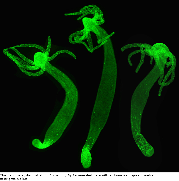 The freshwater Hydra is endowed with an extraordinary power of regeneration, discovered by the Swiss naturalist Abraham Trembley more than 250 years ago. The group of Brigitte Galliot, professor at the Department of Genetics and Evolution of the Faculty of Science of UNIGE, has studied the stem cells functioning and cellular plasticity of the polyp: "its nervous system regulates in particular contraction bursts, feeding behavior, moving or swimming. If the stem cells responsible for its renewal are depleted, the Hydra can still develop, even when all its neurons have disappeared. We wanted to understand how this is possible."