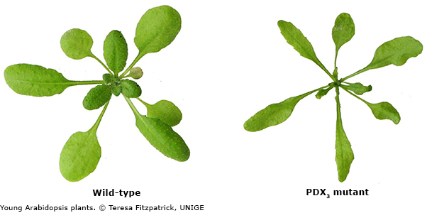 In collaboration with the Max-Planck-Institute for Molecular Plant Physiology and the University of Düsseldorf (Germany), the researchers examined a version of the model plant Arabidopsis thaliana (thale cress), which is defective in the PDX3 enzyme. Surprisingly, these plants displayed strongly impaired growth and development. “PDX3-defective plants cannot transform a vitamer called PMP, therefore the latter accumulates within the cell. While we hypothesized that the observed anomalies may be due to the high levels of PMP, we had no idea of the underlying mechanism and questioned its precise contribution”, says Maite Colinas, member of the Geneva team and first author of the study.