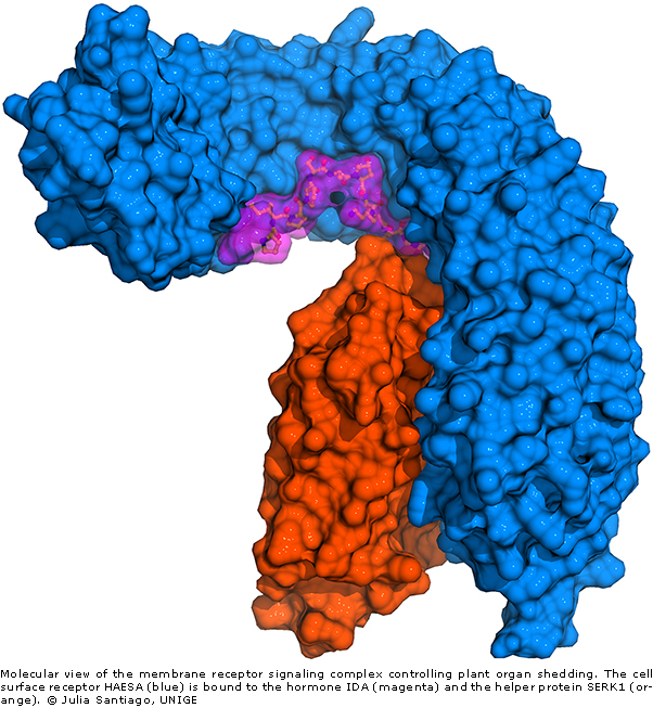 “The fascinating thing about SERK1 is that it not only plays a role in the shedding mechanism of plant organs, but also acts together with other membrane receptors that regulate totally different aspects of plant development”, says Julia Santiago, first author of the study. Indeed, SERK1 is a versatile helper protein shared between different signaling pathways. When bound to another protein receptor, it can also for example signal the plant to grow.