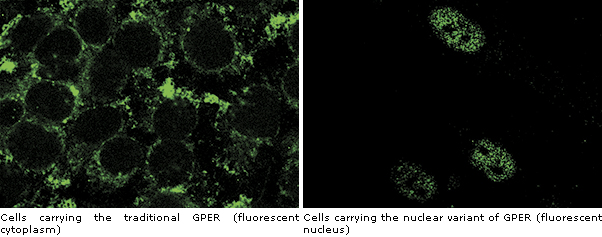 The nuclear variant also acquires new properties. Indeed, unlike the GPER receptor hitherto described, it is capable of stimulating the expression of genes involved in malignant growth. Moreover, fibroblasts present in the tumor microenvironment and carrying nuclear GPER secrete molecules that promote the migration of neighboring breast cancer cells.