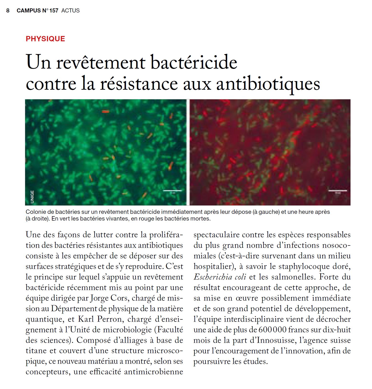 Un revêtement bactéricide contre la résistance aux antibiotiques, Campus157, juin 2024