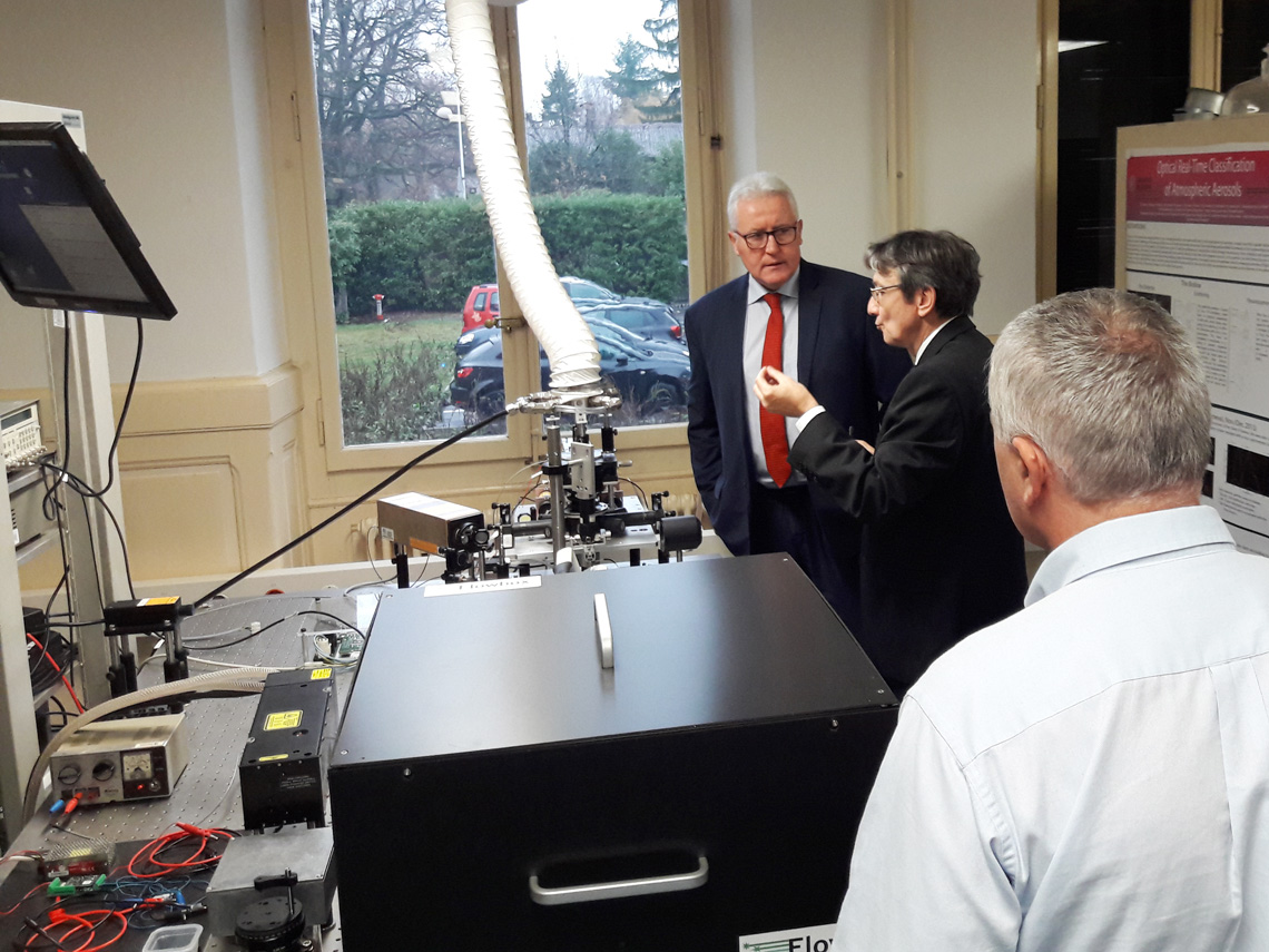 La pollution de l’air est un enjeu de santé publique, qui fait l’objet d’analyses de plus en plus poussées. Les particules fines, qui caractérisent le smog hivernal, s’avèrent particulièrement nocives pour la santé. Lundi 11 décembre, des équipes de l’UNIGE et du Département de l’environnement, des transports et de l’agriculture (DETA) se sont retrouvées aux côtés du recteur Yves Fluckiger et du chef du DETA, Luc Barthassat, afin de présenter les méthodes d'analyse de la pollution dont disposent désormais les autorités, grâce à leur collaboration avec des chercheurs de l’Université. Un exemple probant de transfert de connaissances au bénéfice de l’environnement et de la société.