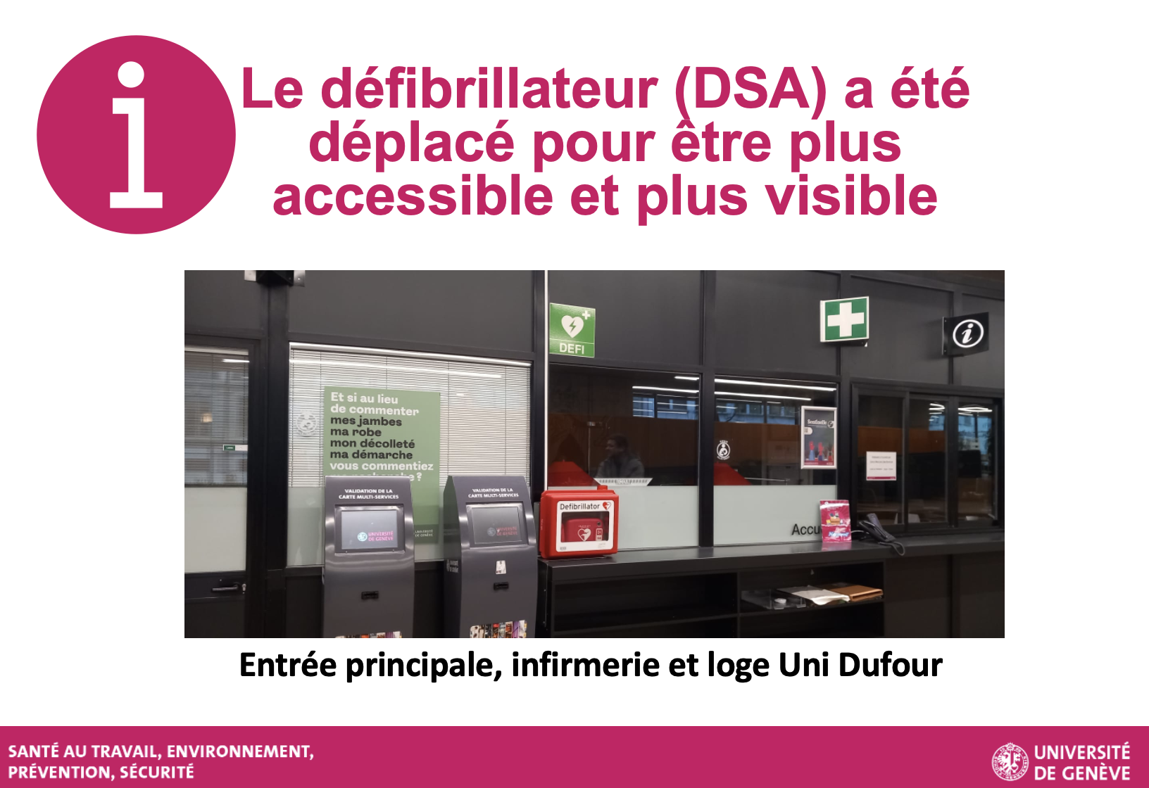 Localisation : 4 défibrillateurs sont disponibles sur le campus.
