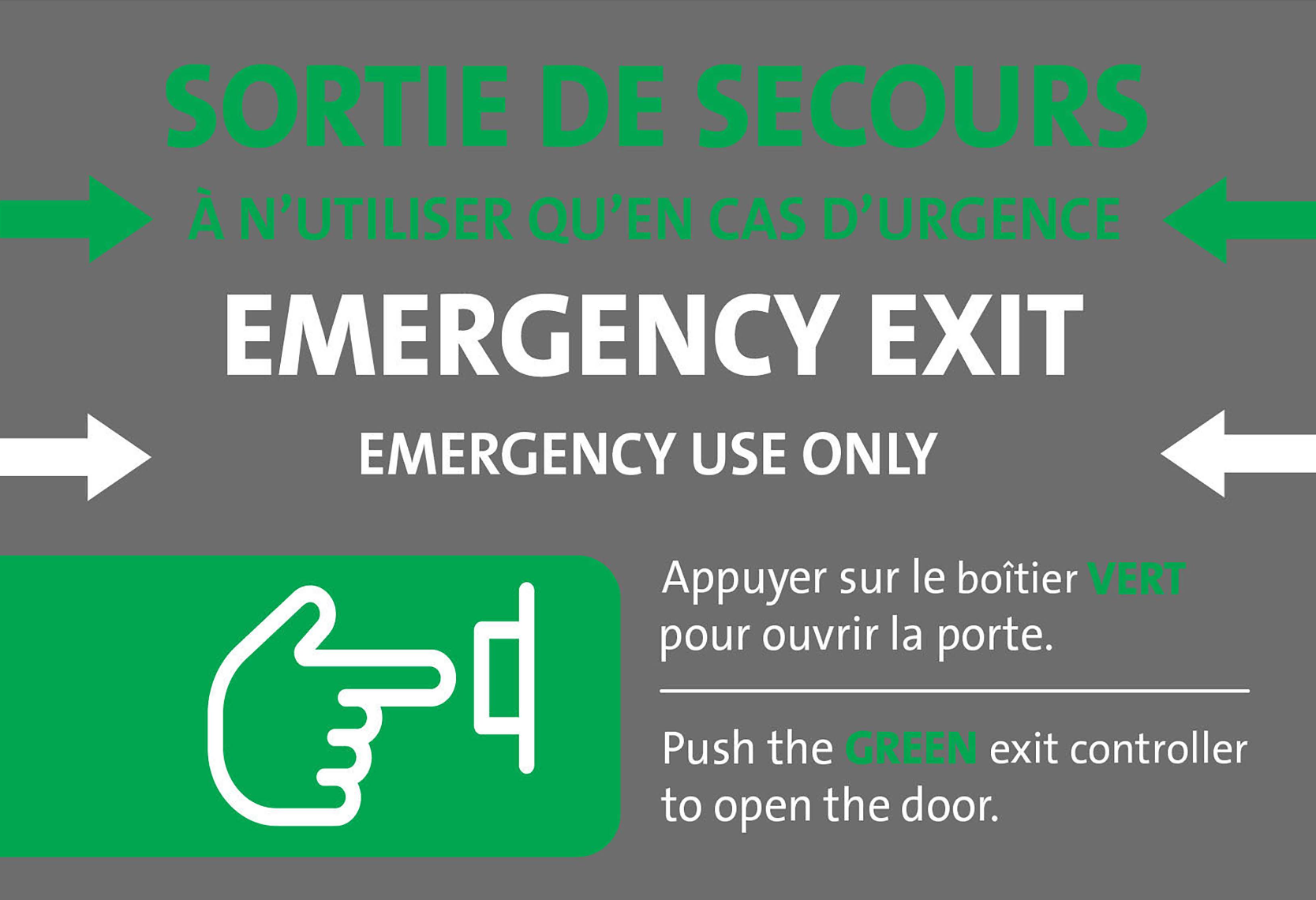 Certaines issues sont équipées de systèmes de déverrouillage. Il peut s'agir de "barres antipanique", il vous suffira alors d'appuyer sur la barre horizontale de la porte pour que celle-ci se déverrouille ou bien de "boutons-poussoirs d'urgence" à activer pour ouvrir les portes.