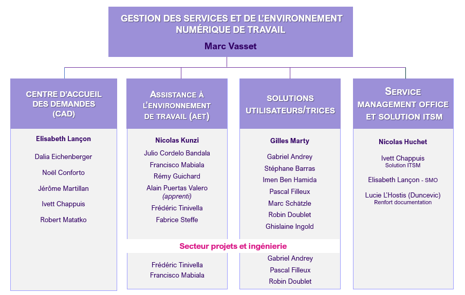Gestion des services et de l'environnement numérique de travail - Organigramme