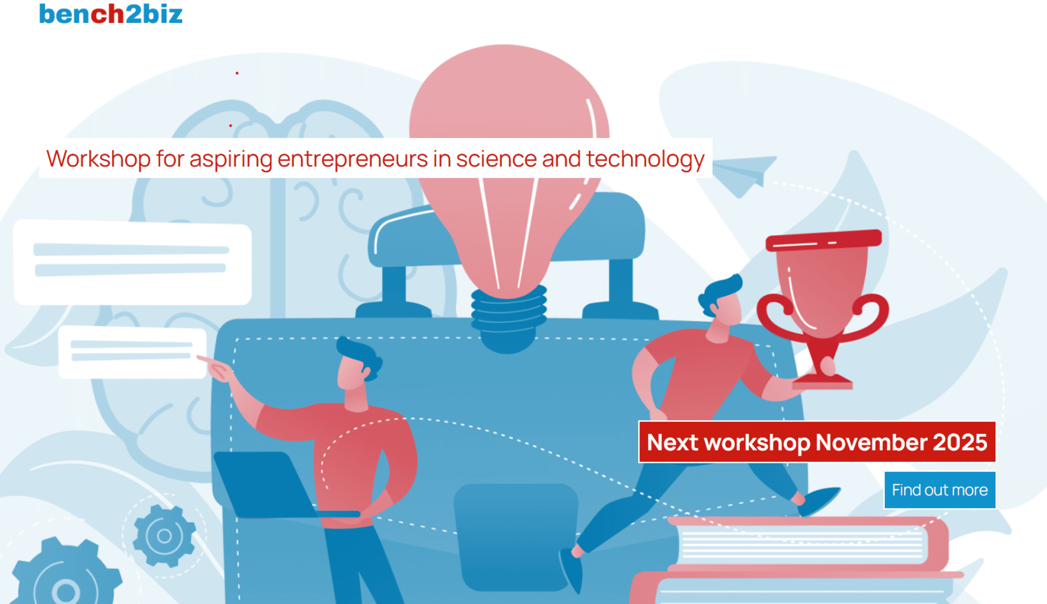 Conçu pour les domaines de haute technologie, la formation bench2biz s'adresse aux entrepreneur-es en herbe pour les aider à démarrer une nouvelle entreprise. Les participantes et participants sont aidés à passer du stade de l'idée à celui du concept, à donner forme à leurs idées d'entreprise, à déterminer la valeur commerciale de leur idée ou invention et à poser les bases de leur plan d'entreprise.