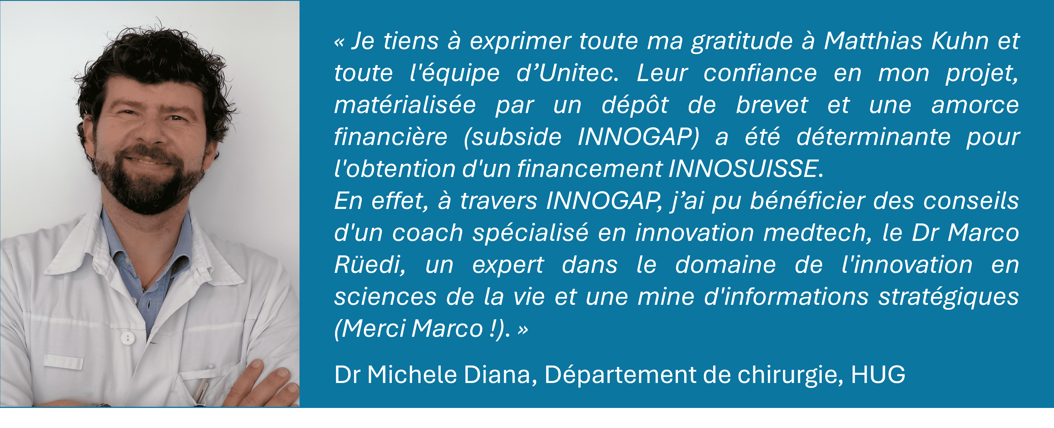 Un financement Innosuisse de CHF 600'000 a été obtenu par le Pr Michele Diana, médecin adjoint au Département de chirurgie des Hôpitaux universitaires de Genève, pour son projet portant sur la conception d'un nouveau dispositif permettant de réaliser une anastomose du tractus digestif.